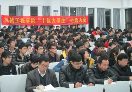 为展现当代大学生良好的精神风貌,树立优秀典型,引导大学生健康成才,3月14日晚,机械工程学院举行2011年度十佳大学生公选会。学院党总支副书记郑建华、各班班主任、辅导员及168名学生代表参加。