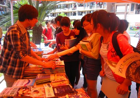 爱心捐书活动包括捐赠、义卖与爱心赠言三项活动,将持续一周时间。活动期间,同学们纷纷来到现场,或购买图书、或捐赠图书或写赠言,所筹集的善款和书本将由捐赠人和志愿者送往永安民工子弟小学。同学们热情高涨,迫切希望能尽一己之力帮助民工子弟学校的小朋友读更多更好的书,行更远的路。一张张留言承载着最真挚的祝福,一叠叠厚重的图书寄托着最美好的祝愿。