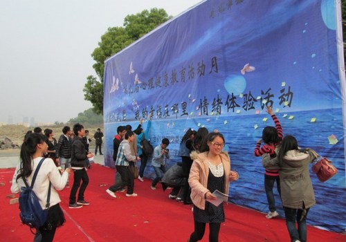 启动仪式后,举行了“击鼓传福”和“幸福墙”情绪体验活动。同学们踊跃参与,用小纸片写下自己对幸福的感悟和心愿张贴在“幸福墙”上。通过这些活动,使同学们进一步认识到心理健康的重要性,学会更多的情绪调整的方式,激发学习心理学知识的浓厚兴趣,增强维护自身心理健康的意识,从而培养良好的心理行为习惯,更好地学习和生活。(金彩云)