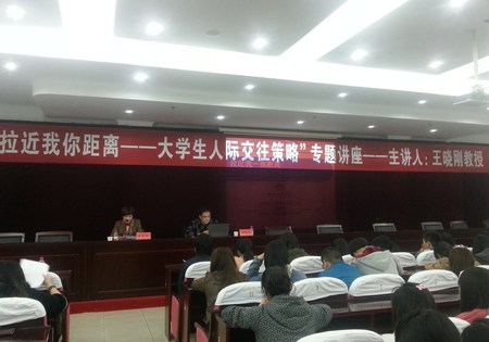 当晚,王晓刚教授在临海校区学术报告厅为学生作《拉近我你距离――大学生人际交往策略》专题讲座。讲座引用丰富的事例,生动讲述了大学生日常生活中常见的人际困惑和交往问题,探讨了大学生人际交往中应把握的策略,并现场解答同学提出的问题。整场讲座内容丰富,同学们受益良多。