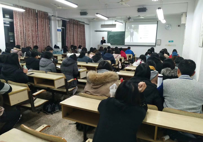 12月13日晚,由学生处(就业服务中心)举办的“助力就业·成就未来”就业指导系列讲座第三期在临海校区举行。我校2007届中文专业毕业校友、吉利集团零部件事业发展中心经营管理总监徐硕毅应邀担任主讲嘉宾;校学生处副处长马斌主持讲座。