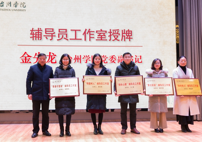 1月3日上午,我校首批辅导员工作室授牌仪式在椒江校区大学生活动中心举行。校党委副书记金先龙出席仪式,各二级学院党总支副书记、辅导员、班主任和学生工作相关部门老师参加。活动由学工部部长张梅芬主持。