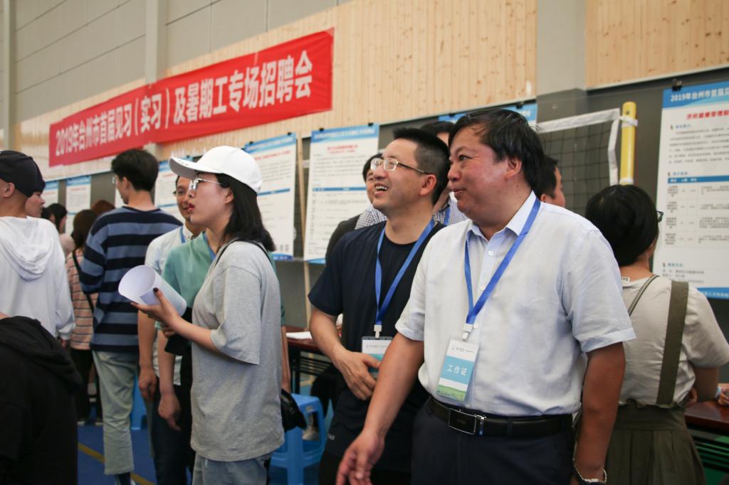5月25日上午,“2019年台州市首届见习(实习)及暑期工专场招聘会”在台州学院椒江校区举行。浙江苏泊尔股份有限公司、浙江海正药业股份有限公司、永高股份有限公司、杰克缝纫机股份有限公司等130家企业带着596个岗位招贤纳才,其中上市企业30余家。