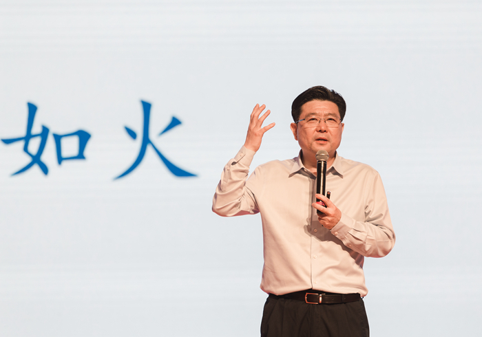晚会在一场大气磅礴、中西合璧的乐器合奏《天下》中拉开帷幕。随后,崔凤军走上晚会的舞台,为全体毕业生送上临行的“一件法宝”和“五大秘籍”,寄语他们“带着美好闯世界 怀揣梦想再出发。”
