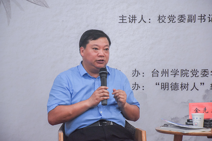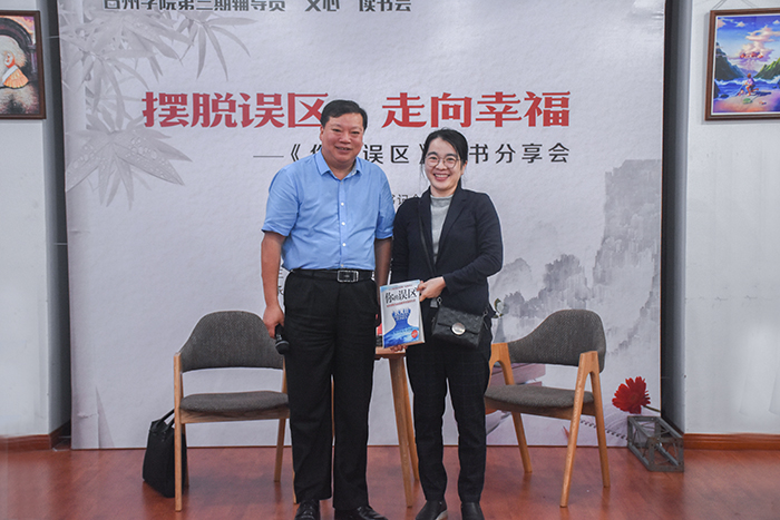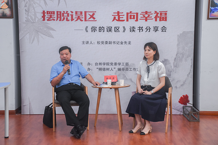 6月13日晚,由校党委学工部主办、“明德树人”辅导员工作室承办的台州学院第三期辅导员“文心”读书会在临海校区团辅室举行。校党委副书记金先龙应邀担任主讲嘉宾;校学工部部长张梅芬、副部长马斌出席,临海校区各学院党总支副书记、辅导员及学工人员分享心理学著作《你的误区》。