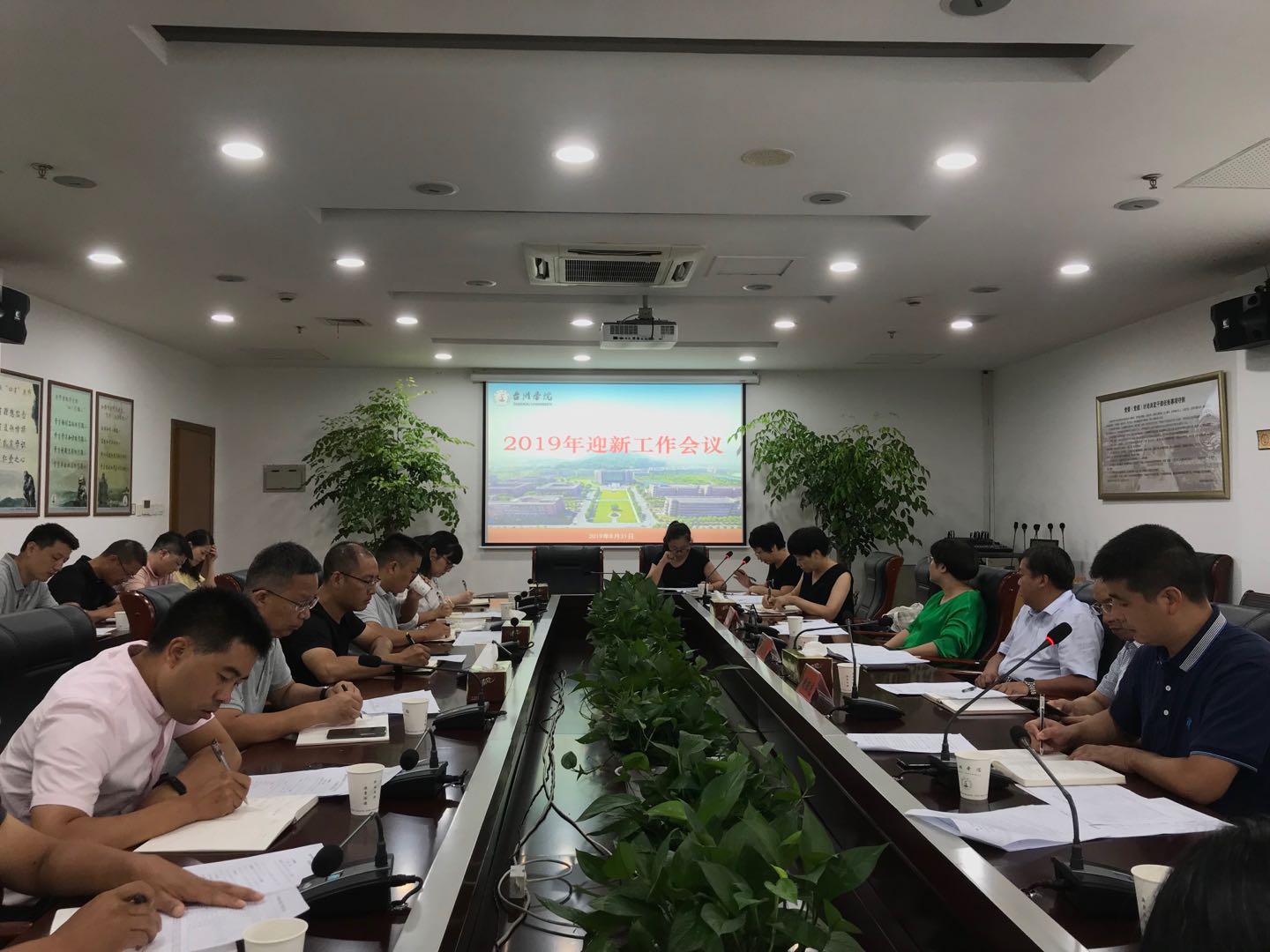 8月31日下午,2019年迎新工作会议在椒江校区第一会议室召开。校党委副书记金先龙、副校长胡韶光、李钧敏出席会议;校相关职能部门负责人及各学院分管领导参加。党校办主任蔡海江主持会议。