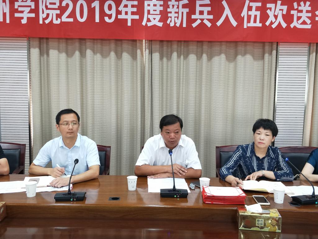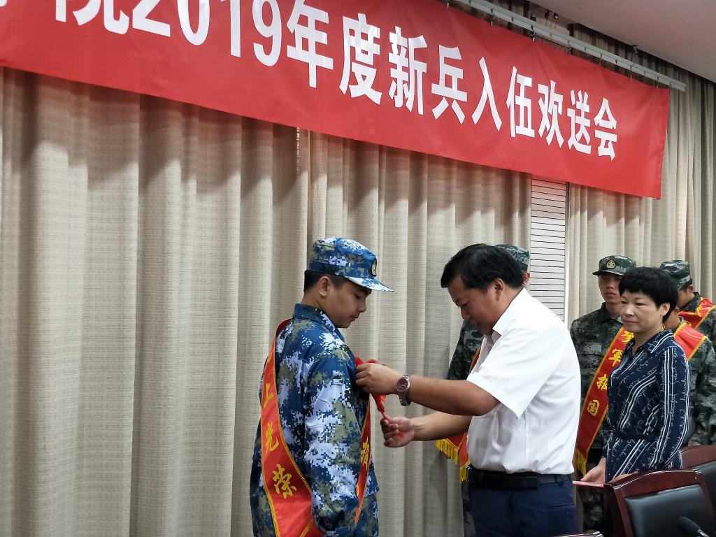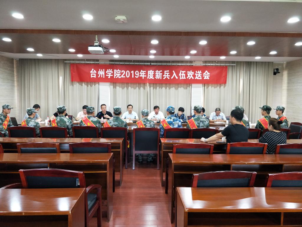 9月9日上午,学校在临海校区第一会议室举行2019年度新兵入伍欢送会。校党委副书记金先龙、相关职能部门负责人、来自七个学院的11位入伍学生及其所在学院分管学生工作领导和部分学生家长参加此次欢送会。会议由校人武部部长张梅芬主持。
