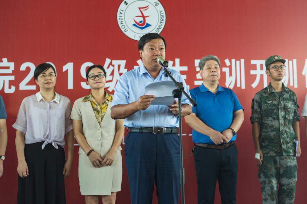 又是一年秋风劲,又是沙场点兵时。9月11日上午,我校分别在椒江校区运动场、临海校区风雨篮球场举行2019级新生军训开训仪式。校党委副书记金先龙、副校长李钧敏,两校区军训团团长向鹏、林建出席典礼;校党委学工部部长张梅芬、临海校区综合办主任林才溪主持仪式;各二级学院及相关部门负责人出席并在主席台就坐。