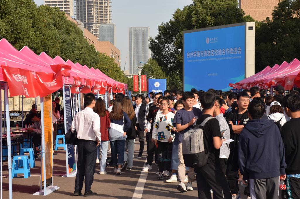 10月31日下午,我校与黄岩区校地合作专场招聘会在台州学院椒江校区举行。此次招聘会是我校与黄岩区全面推进校地合作背景下开展的一次专场招聘会,黄岩区政府组织了标力建设集团、永高股份、联化科技、永宁药业等30家上市企业、知名企业,为毕业生提供了711个就业岗位,涉及材料科学、高分子技术、自动化技术、生物制药等多个领域行业。招聘会不仅吸引了1000多名的2020届毕业生参加,而且还吸引了很多低年级的同学。
