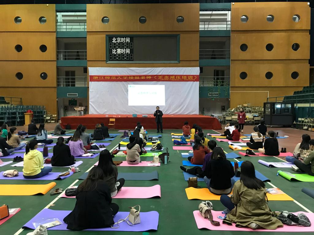 此次专题培训分别邀请了浙江师范大学正念研究实验室专业级正念师楼挺和浙江省教职工心理健康教育服务中心特聘专家杨迪担任主讲。楼挺老师从什么是正念、为什么需要正念练习、正念减压的方法、正念减压在生活中的运用等四个方面展开具体阐述,指导学员就正念呼吸进入当下,关照内心、身体扫描、正念太极等项目进行了实操练习。