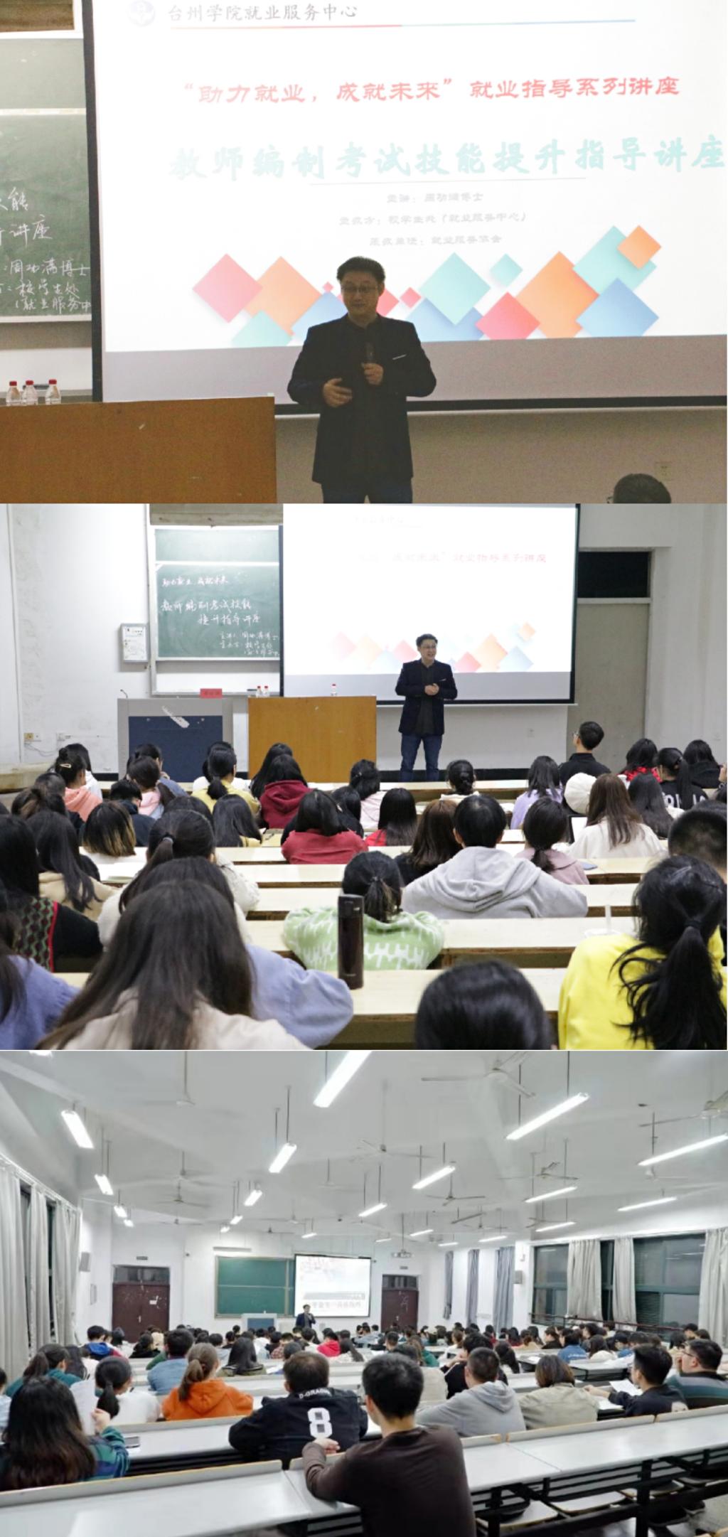 11月15日至17日,由校学生处(就业服务中心)主办,校就业服务协会承办的“教师编制考试技能提升指导讲座”“国家公务员考试冲刺一周提升指导讲座”“国家公务员考试技巧提升讲座”“就业咨询面对面”等共五场讲座在临海校区和椒江校区举办。这系列讲座邀请浙江大学行政管理学博士、副教授周功满老师担任主讲。校学生处副处长马斌主持。