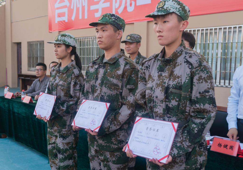 伴随着激昂的中国人民解放军军歌,军训成果汇报正式开始。由2020级新生组成的分列式方阵以饱满的精神、昂扬的斗志、矫健的步伐、嘹亮的口号有序通过主席台并接受检阅。校党委副书记金先龙、副校长李钧敏代表学校党政对海防四营官兵、带训教师表示衷心感谢,向全体参训同学致以问候和祝贺。同时向全体2020级新生提出两点要求:一是不忘初心,牢记使命。希望同学们坚定理想信念,牢记使命担当,把个人理想追求融入国家和民族事业中,在实现中国梦的生动实践中放飞青春梦想;二是澡身浴德、修业及时。作为一名新的台院人,希望同学们在接下来的大学生活中,践行校训精神,成长为“忠诚、奉献、进取、合作”的新时代垦荒人才。会上,对2020级军训先进集体、先进个人和优秀教官进行表彰。
