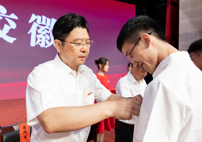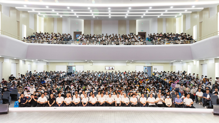 典礼最后,校党委书记崔凤军走上舞台,为全体2020级新生上“开学第一课”。他以“活出鲜衣怒马的幸福人生”为题,从“遇见、初识、逐梦、蝶变、扎根”五个篇章出发,为新生送上“牵手幸福”的六个密码,寄语新生挥洒青春、不负韶华,活出鲜衣怒马的幸福人生。