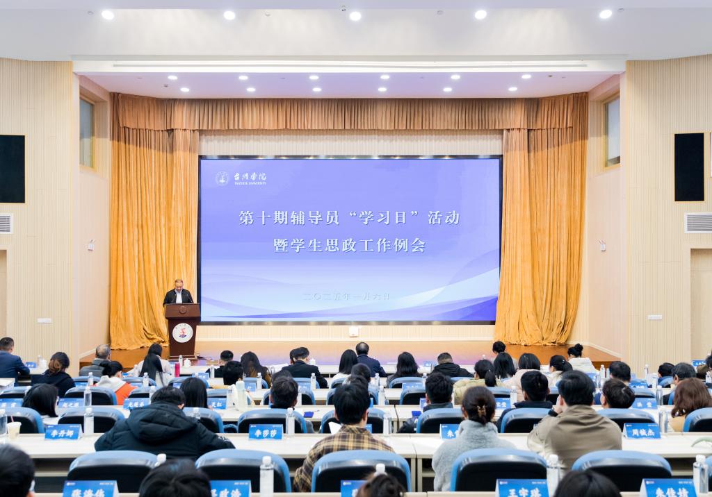 1月6日上午,第十期辅导员“学习日”活动暨学生思政工作例会在椒江校区国际会议厅举行。校党委副书记项凤日,校党委委员、宣传部部长蔡海江出席;学生思政工作例会成员、全体辅导员及学工部门人员近百人参加。会议由校党委学工部部长杨启富主持。
