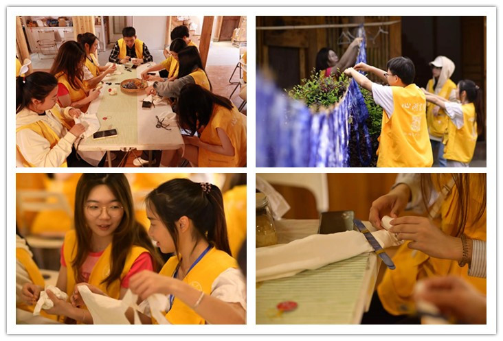感受土豆带来的快乐后,同学们来到乌岩头古村的见素艺术工坊,体验扎染教学。扎染在民间又称“撮缬”、“撮晕缬”或 “撮花”,是中国民间传统而独特的染色工艺,也是国家级非物质文化遗产。”