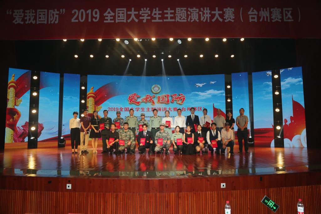 “爱我国防”2019年全国大学生主题演讲大赛(台州赛区)于10月10日下午在我校椒江校区大会堂隆重举行。台州军分区副司令郭伟忠、军分区政治工作处主任陈继平、台州市教育局副调研员王华赋、我校党委委员、宣传部部长金松出席,我校党委学工部(武装部)部长张梅芬和其他四所高校武装部负责人、带队老师以及1100多名学生代表参加本次活动。我校3名学生参加比赛并获得佳绩。
