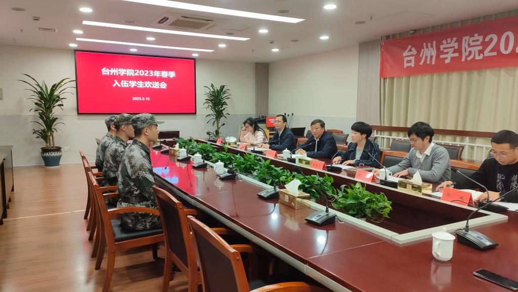 3月10日下午,2023年春季入伍学生欢送会在椒江校区行政楼第一会议举行。校党委副书记金先龙出席并讲话,相关职能部门、二级学院领导和老师以及学生家长代表参加欢送会。校学工部、人武部部长张梅芬主持会议。