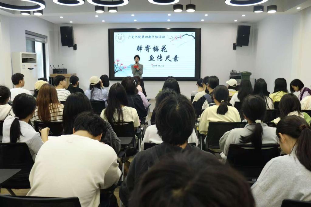 为引导学生深入自我探索,明确学业与人生方向。11月16日,在广文书院多动能厅,书院全体新生参加了以“驿寄梅花,鱼传尺素”为主题的第四期书信活动。
