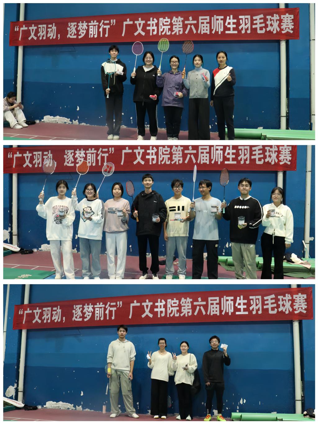 为增进师生感情,培养团队精神,提高学生的身体素质,12月5日下午,广文书院在临海校区室内羽毛球馆举办了以“广文羽动,逐梦前行”为主题的师生羽毛球赛。广文书院副院长金旭球、辅导员黄廷美、书院部分导师和学生参加此次活动。