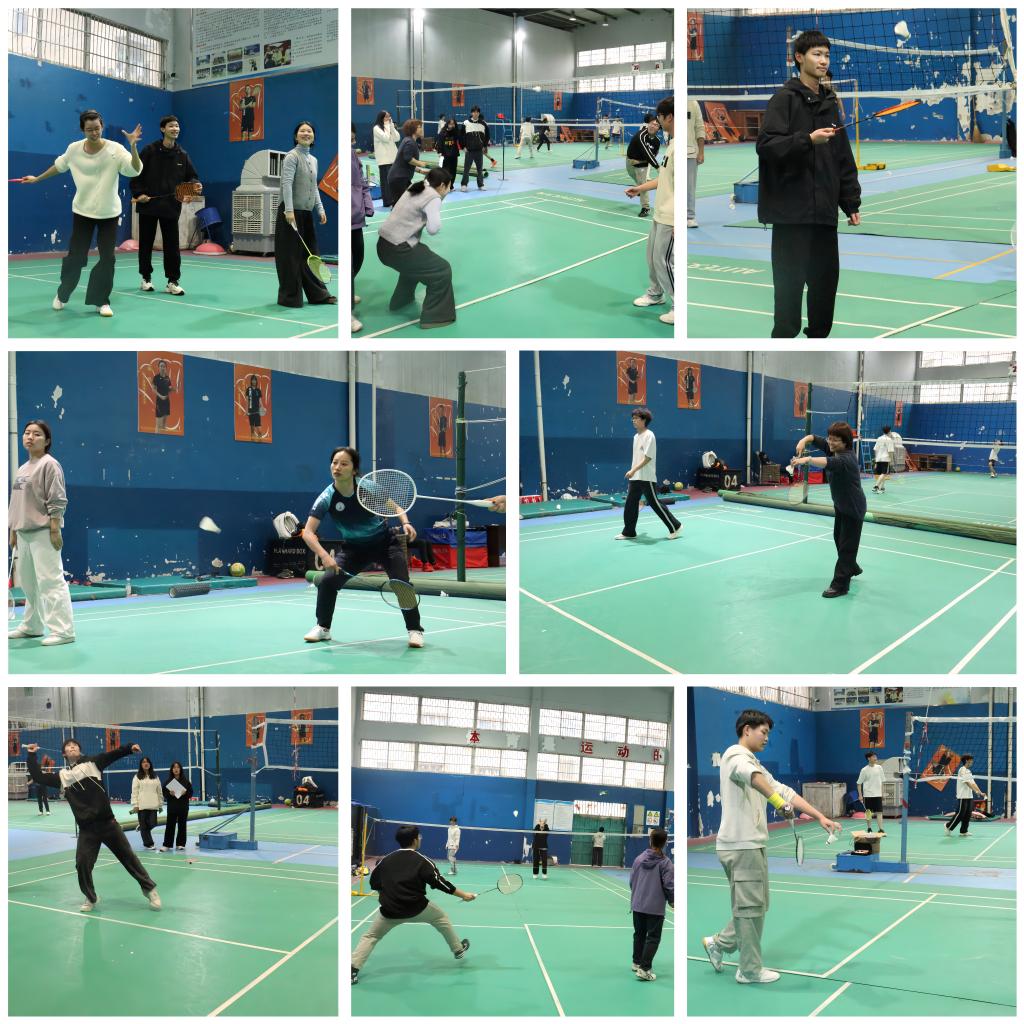 羽毛球叠叠乐中,学生们紧密站位,轻声交流战术,一人发球精准控制力度与方向,接球者全神贯注预判来球线路,你打我接,配合默契,展现出专注与耐心;躲闪羽毛球时,小组成员相互照应,敏捷的身姿与快速的反应尽显无疑,现场欢声笑语不断;转体颠球比多环节,学生们专注于每一次颠球,在转体一周的同时巧妙控制力量与角度,努力保持球的起落节奏,充分发挥了自身的运动技巧与协调能力。这些游戏不仅让学生们更深入地了解羽毛球运动的多元魅力,还在互动中增进了彼此的友谊与团队协作精神。