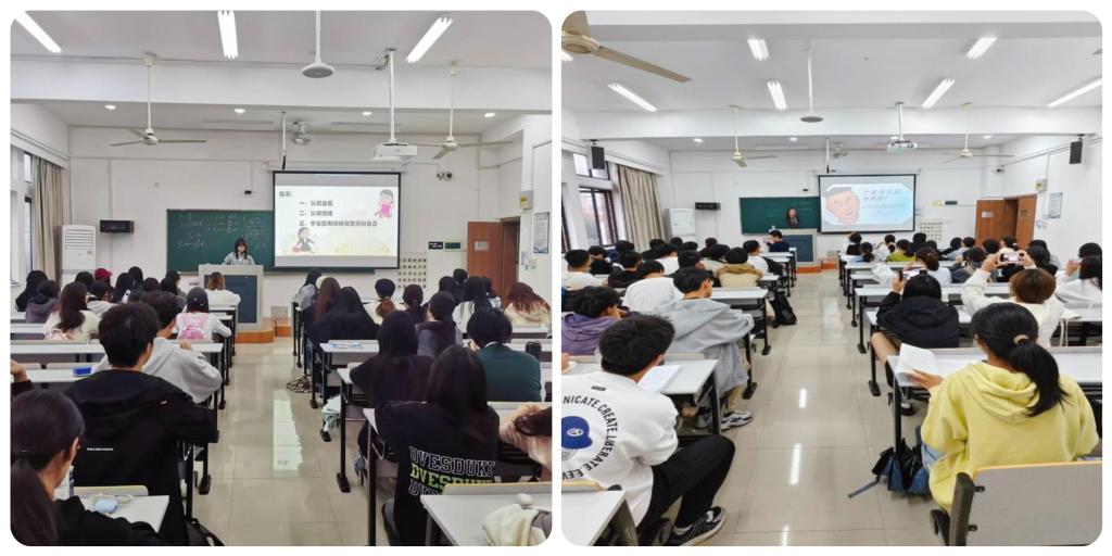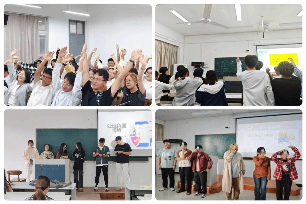 活动前期,各班心理委员根据班级实际情况,以化解心理困扰为方向,用心选择同学们关心的主题,精心筹备班会活动。据统计,此次班会活动主要聚焦于“自我内耗”“学业压力”及“恋爱交友”等方面。在商学院“与压力共处”心理健康主题班会上,同学们将“发泄小纸团”用力扔向黑板上的烦恼词条,让沉重的心情烟消云散;在智能制造学院“我来安慰他”主题班会上,同学们结合自己的生活经历讨论“排忧解难”的方法;医学院的同学们则以“情绪知多少”为主题,将心理健康知识问答的游戏活动推向高潮......不同学院的心理班会各具特色,犹如点亮了一盏关爱自己的明灯,助力同学们在求学路上摆脱内心的束缚,轻装上阵,绽放青春华彩。