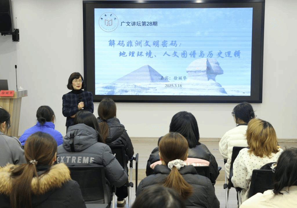 3月18日晚,广文书院在多功能厅举行以“解码非洲文明密码:地理环境、人文图谱与历史逻辑”为主题的讲座。特邀浙江师范大学教授、博导徐丽华为主讲嘉宾,众多书院学生到场聆听,共同开启探索神秘非洲文明的知识盛宴。
