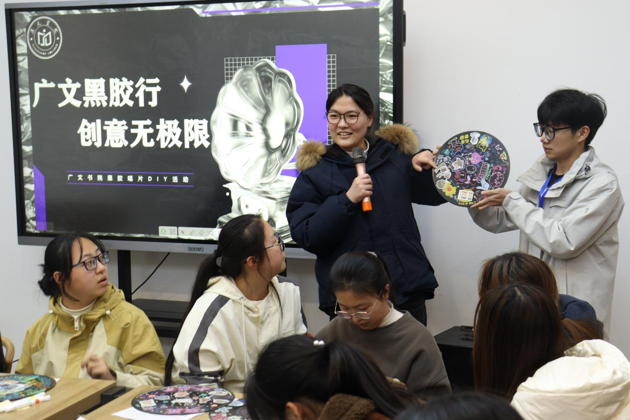 为激发学生的创新思维,搭建艺术交流平台,29日下午,广文书院在素质工坊(一)开展以“广文黑胶行,创意无极限”为主题的黑胶唱片DIY活动,广文书院副院长金旭球和40多名书院学生参加活动。