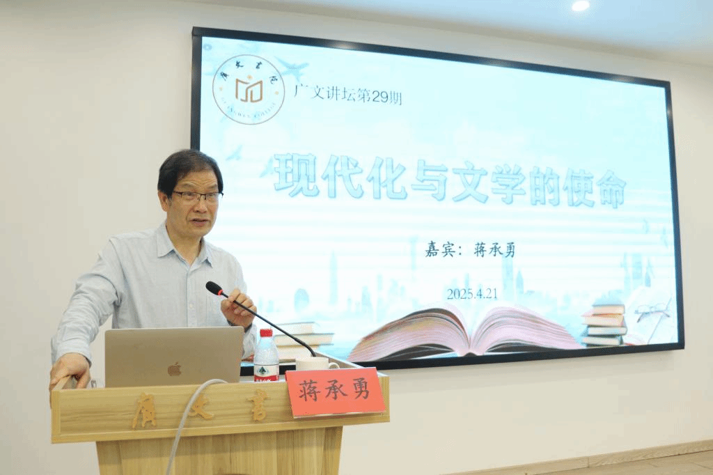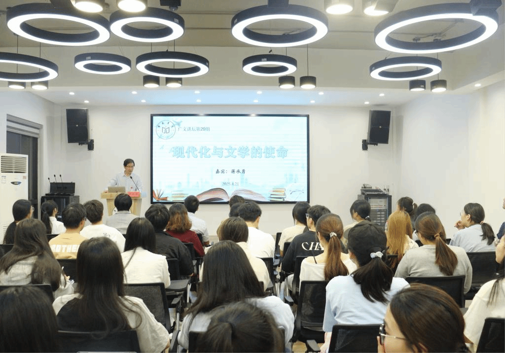 4月21日晚,广文书院在多功能厅举行了以“现代化与文学的使命”为主题的讲座。浙江特级专家蒋承勇应邀出席并主讲,吸引众多书院师生参与。