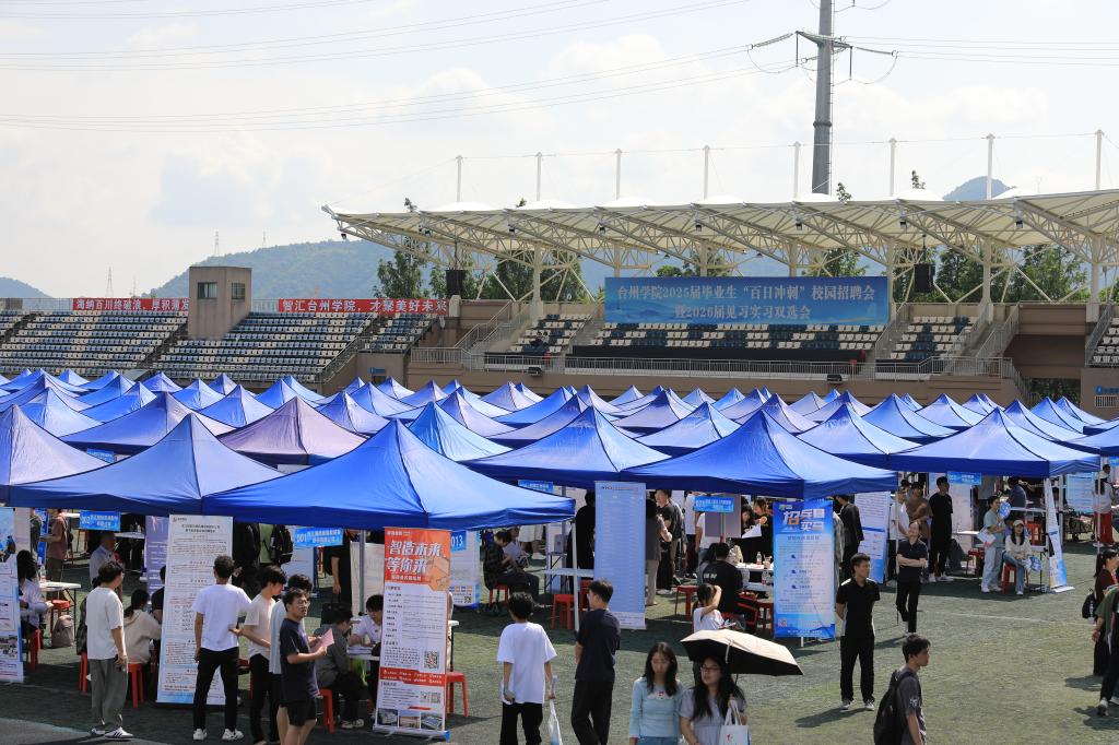 5月29日,台州学院2025届毕业生“百日冲刺”校园招聘会暨2026届见习实习双选会在椒江校区田径场隆重举行。此次招聘会由台州学院、台州市人力社保局主办,台州学院就业服务中心、台州市就业服务中心、台州市人力资源服务协会承办。台州市人力社保局副局长何韬、台州学院党委副书记项凤日等领导到场指导,并与用人单位和毕业生进行了深入交流。