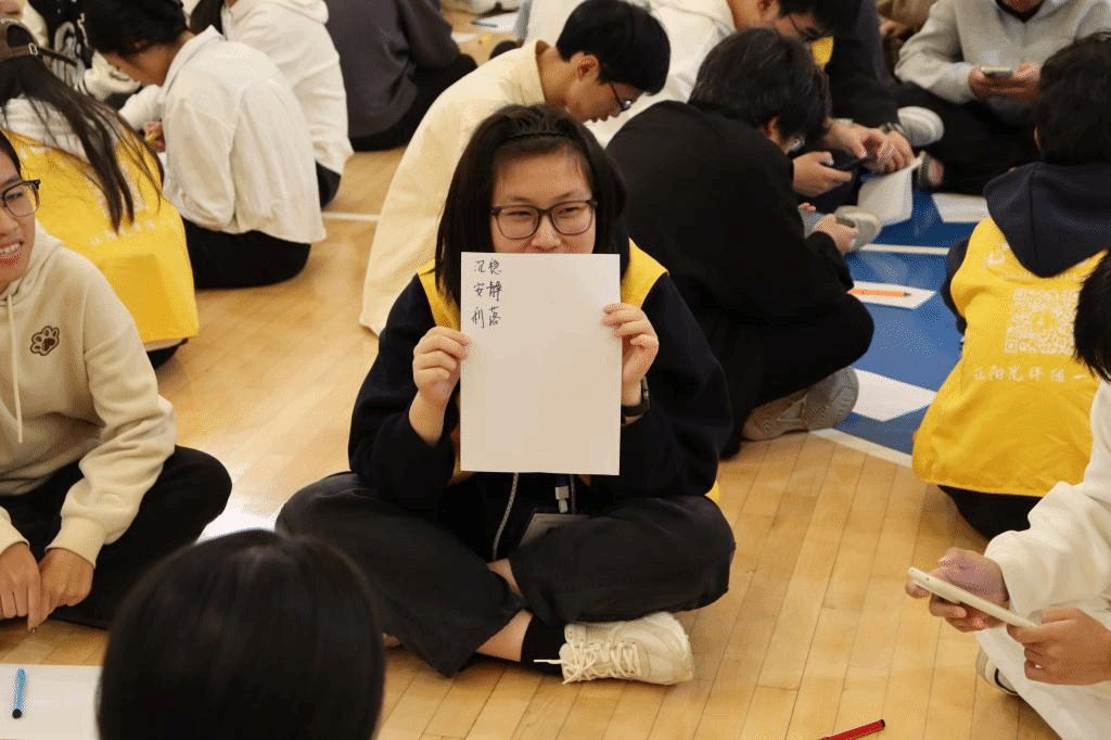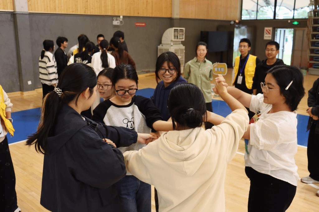 活动以热烈的“秋日初见你”破冰环节拉开帷幕。学校心理健康互助中心同学带领互动,通过精心设计的游戏,有效促进了新生间的交流互动,迅速消除了初识阶段的拘谨氛围;随着现场气氛升温,“快乐并肩行”团队协作环节随即展开,同学们按前期既定分组,在“盲行寻宝”“无声排序”“你划我猜”等趣味项目中友好竞技,各队成员全情投入、商讨策略、默契配合,尽显团结协作与勇于挑战的青春风貌。