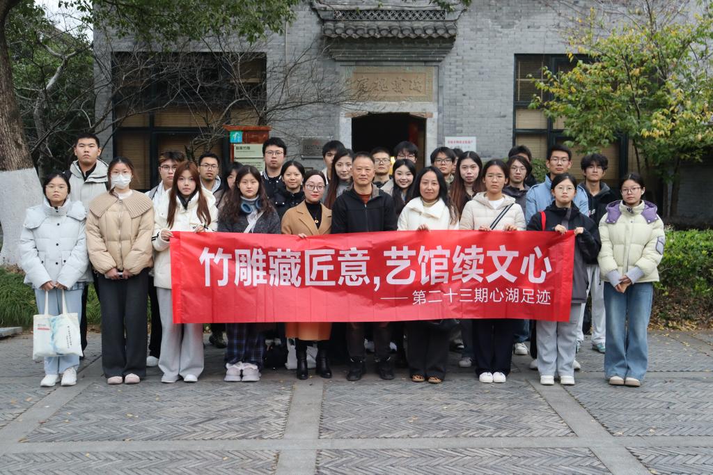 12月13日下午,心湖书院组织部分学生赴黄岩罗启松翻簧竹雕艺术馆,开展第二十三期“心湖足迹”实践活动。本次活动以“竹雕藏匠意、艺馆续文心”为主题,由艺术学院副教授张维纳带队,带领同学们走近国家级非物质文化遗产——黄岩翻簧竹雕。