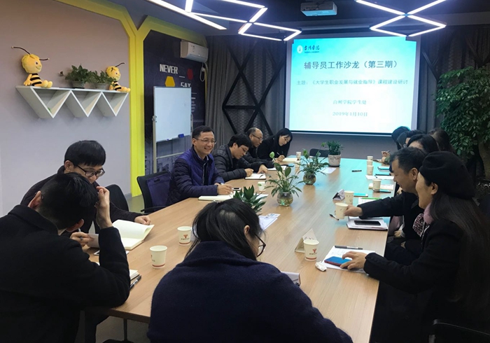 1月10日、12日,校第三期辅导员工作沙龙分别在椒江、临海校区举行,共同研讨《大学生职业发展与就业指导》课程建设。沙龙由学工部副部长马斌主持,各二级学院辅导员代表参加。