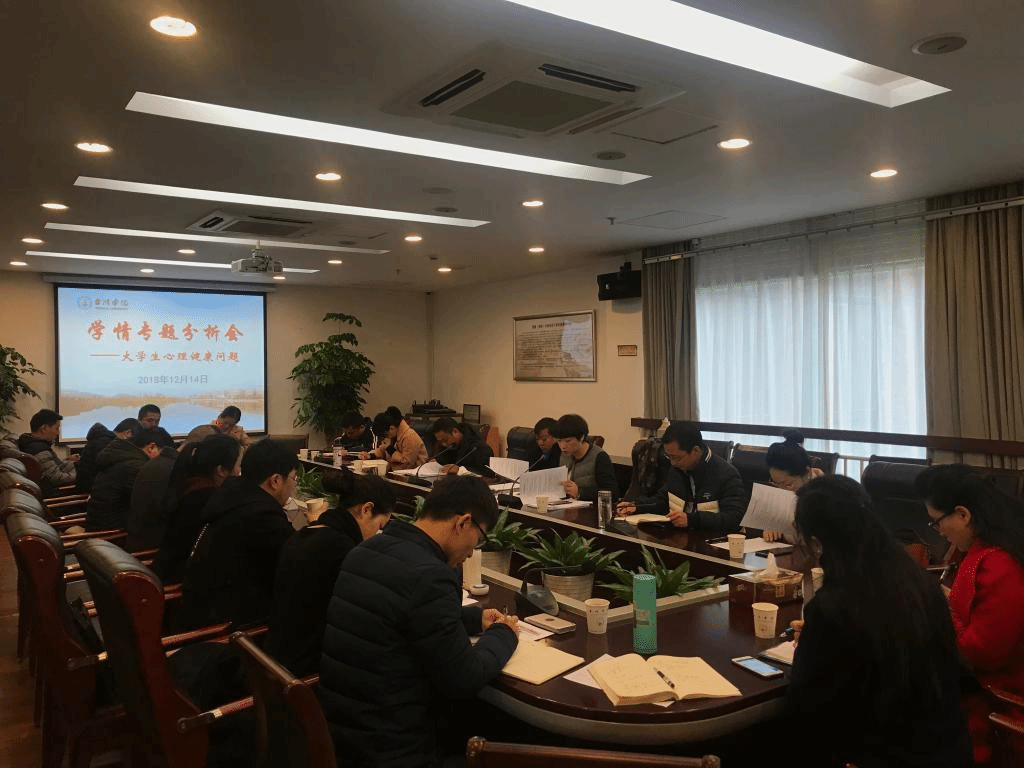 12月14日上午,以大学生心理健康问题为专题的学情分析会在椒江校区第一会议室召开。校党委副书记金先龙出席;校相关部门负责人、各学院分管学生工作领导及心理健康教育与咨询中心有关老师参加,学工部部长张梅芬主持会议。