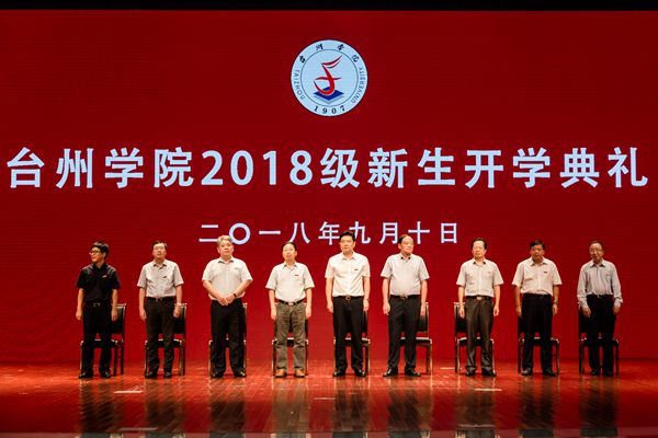 典礼在雄壮的国歌声中正式开始。随后,校领导为2018级的蔡雨璋、陈可心、陈佳敏等18位新生奖学金获得者颁奖。这18位新生奖学金获得者是根据学校《台州学院新生奖学金评定发放办法》评选产生,其高考成绩高出当地全国普通高校招生第一段录取分数线5分及以上,每人获得一万元的奖励。