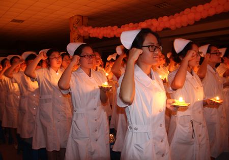 授帽仪式在摇曳的烛光下,伴随着《爱因为在心中》歌声徐徐落下帷幕。接受授帽仪式的学生深有感触,承诺在以后的工作岗位将奉献爱心,关爱生命,以爱的名义坚守使命和责任。()