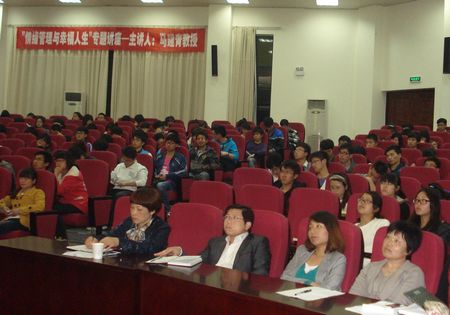 当晚,马建青教授为我校青年学生作《大学生情绪管理与幸福人生》讲座。讲座从大量贴近现实、鲜活生动的事例分析入手,结合时代特点和当代大学生的身心特征,深入浅出地阐述了情绪的管理和调控方法,希望同学们能学会合理地疏泄情绪,正确地归因,积极的自我暗示,不要自寻烦恼。
