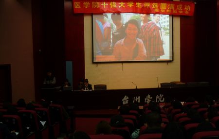 3月12日晚,医学院在椒江校区学术报告厅举行2011年度十佳大学生的评选活动。校团委副书记潘瑛、医学院党总支副书记徐元红出席评选会,学院每班随机选出5名学生代表作为大众评委参与投票。