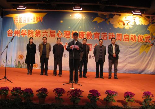 4月22日,校党委学工部主办的第六届“心理健康教育活动周”启动仪式暨心理游园会在椒江校区举行。校党委副书记包国强,校党委委员、椒江校区管委会主任李茂珍,宣传部部长李大兴,学工部部长周全宝,椒江校区管委会副主任、综合办主任金台政,椒江校区管委会副主任徐台榜出席仪式。校心理健康教育与咨询中心老师、各学院辅导员、心晴学社社员、各班心理委员等近300人参加启动仪式。启动仪式由学工部副部长张梅芬主持。