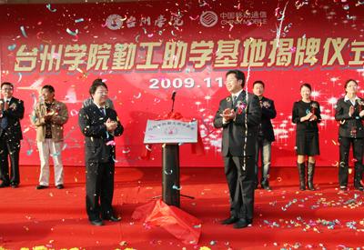 11月5日下午,我校举办了隆重的揭牌仪式。校纪委委员、党委学工部部长、学生处处长周全宝与中国移动临海分公司副总经理王威在临海校区一起为“台州学院学生勤工助学基地”揭牌。学工部、保卫处、团委、后勤服务中心等职能部门的领导以及该公司员工代表、我校师生代表等近100人参加。