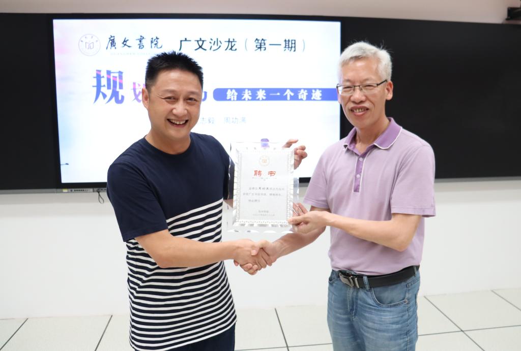 交流会上,广文书院院长胡正武教授还为周功满老师颁发了广文书院校外导师的聘书。