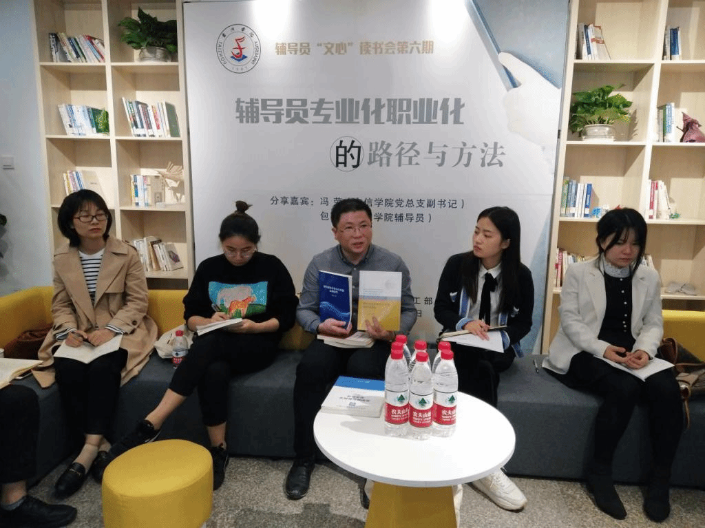 辅导员“文心”读书会坚持“以文修身,用心育人”理念,持续搭建交流互进的学习平台,推进建设一支政治强、情怀深、思维新、视野广的高素质辅导员队伍。“此次交流收获良多,我会自觉担负起新时代赋予的责任、使命,以学识激励人、以道德教化人、以爱心感染人、以投入影响人,辅学生成长,导学生成才。”一位新进辅导员如是说。