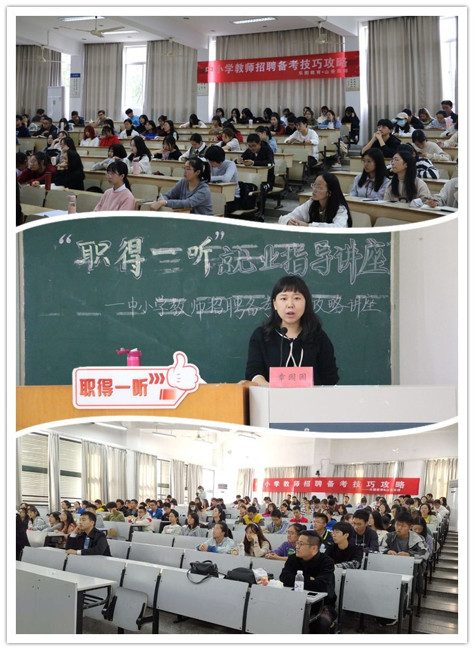 为助力学生考取教师编制,11月7日,校学生处(就业服务中心)分别在椒江校区和临海校区举办了主题为“中小学教师招聘备考技巧攻略”的就业指导讲座。此次讲座由温州市教师编制考试辅导专家、温州大学教师章园园主讲,共180余名相关专业的同学参加。