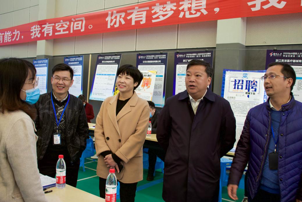 2020年12月12日上午9点,2020台州国际人才合作洽谈大会高校毕业生就业(实习)专场招聘会在我校椒江校区风雨球场举行。校党委副书记金先龙、学生处处长张梅芬、学生处副处长马斌、台州市人才服务中心副主任王红伟及部分二级学院党总支副书记莅临现场与用人单位和毕业生进行深入交流。