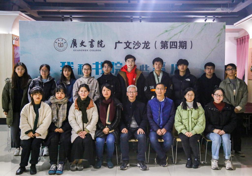 为进一步推进书院建设,完善书院人才评定体制,提高育人工作成效,12月28日晚,广文书院以“我与书院那些事儿”为主题,开展了第四期沙龙活动。活动分为交流会、座谈会两部分。书院院长胡正武、学工部副部长马斌、副院长鲁建波、辅导员黄廷美及书院学生代表共同参加。