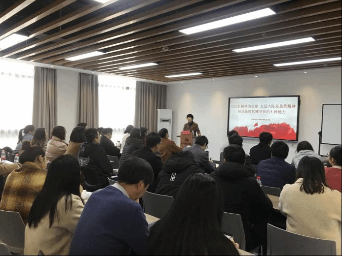 徐敏首先以互动问答的形式,帮助大家厘清了红船精神和大陈岛垦荒精神之间的逻辑关系。随后,她从“红船精神”的价值内涵、浙江实践和时代感召三个方面,对党的革命精神之源——“红船精神”所彰显出的跨越时空的永恒价值和强大生命力进行了深入浅出的阐释,号召所有辅导员要以“三个地”的气魄和担当,干在实处、走在前列、勇立潮头,忠实践行“八八战略”,奋力打造“重要窗口”。最后,她号召广大辅导员要立足台州学院这片热土,以大陈岛“垦荒精神”作为干事创业的精神内驱力,牢记“为党育人、为国育才”的使命,对标习近平总书记提出的“七种能力”,切实把“七种能力”作为“看家本领”和“硬核本事”,在立德树人的实践中,培育具有“忠诚、奉献、进取、合作”特质的台院人才,努力培养担当民族复兴大任的时代新人。