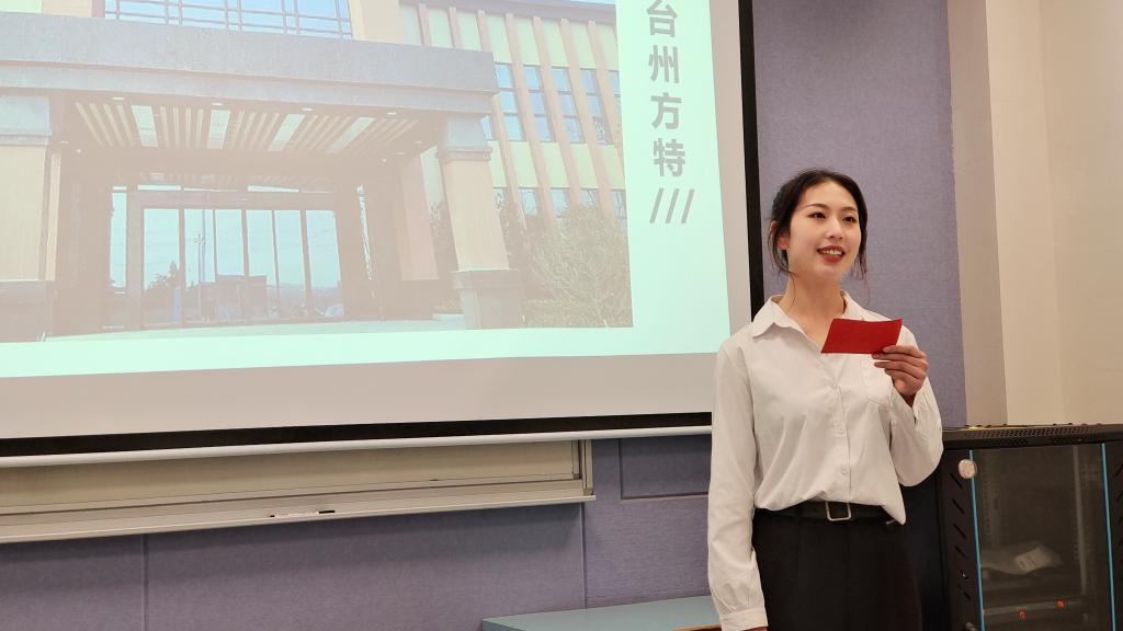大赛分为1分钟自我介绍和4分钟台州名企展示两个环节。参赛者借助PPT、网页等,用演讲、直播、问答等方式向评委介绍团队成员、企业发展概况、人才引进、薪资待遇、企业文化等内容。参赛企业涉及生物医药、新能源电动车、化工、塑料管道、金融等多个行业。通过演讲者的娓娓道来,观众接触到很多优质的企业和单位。