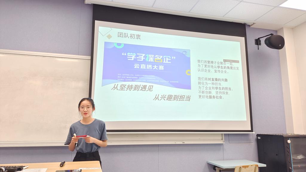5月10日晚,我校在临海校区举办“学子探名企”云直播大赛校内选拔赛,椒江校区的同学通过腾讯视频线上参与。本次比赛共有25支队伍参加,学生处副处长马斌、人文学院党委副书记林仙、人文学院黄莉老师、学生处戴玲斐老师担任评委。