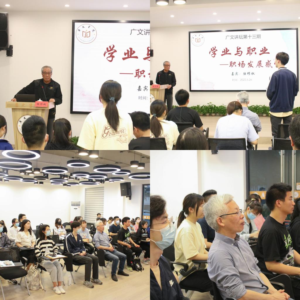 5月26日晚,广文书院举行第十三期广文讲坛。本次讲坛主题为:学业与职业——职场发展感悟。由台州市政府决策咨询委员会副主任陆修钗作主讲嘉宾,广文书院院长胡正武,辅导员黄廷美及部分书院成员参加了此次讲座,学员许伟向主持。