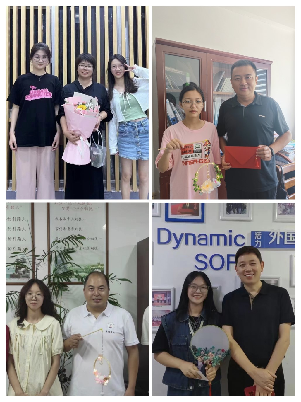 学生们开展了干花团扇和福兔灯笼的手工制作活动。同学们通力合作,将一朵朵精美的干花粘贴到团扇上,将一颗颗小珠子串成一条条灯笼提手,制作出极具特色的团扇和纤巧可爱的福兔灯笼。“教诲如春风,师恩深似海,祝老师节日快乐!”“当星星隐匿在遥远的天际,依稀的灯光依然闪亮在您窗前,正因您的执着,才有我们璀璨的明天。”除了手工制品,同学们还准备了精美的贺卡,在贺卡里写上了深情的文字。通过这些活动,同学们向自己的导师表达了满满的谢意和诚挚的祝福。