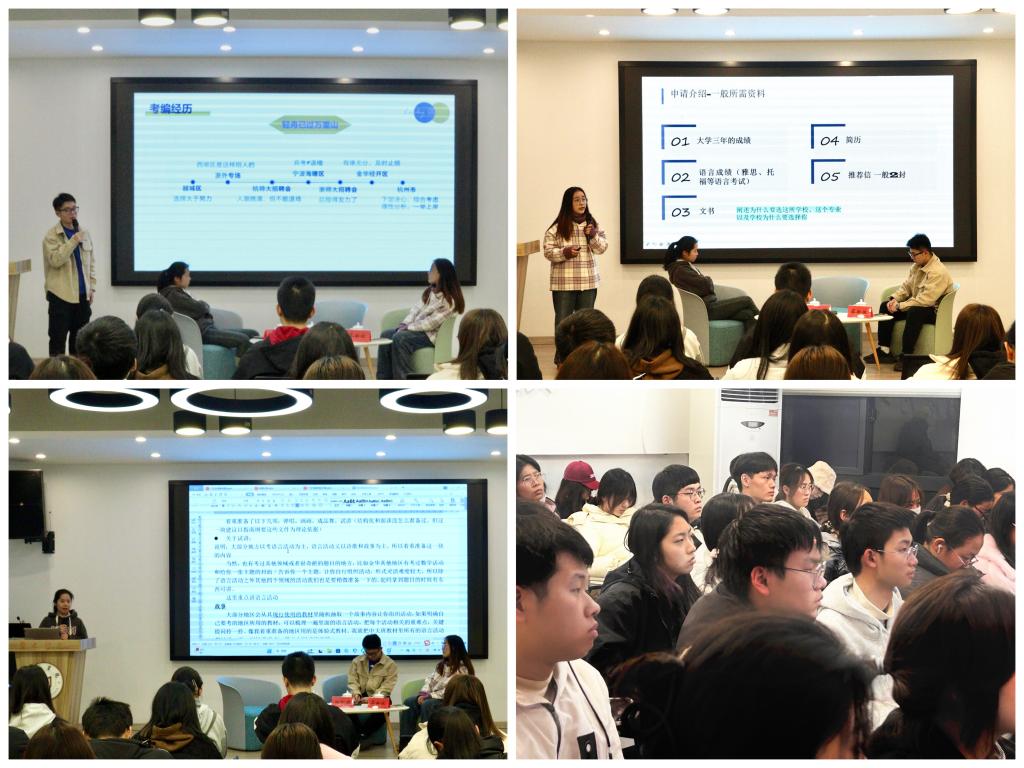 活动伊始,蔡新依根据自身升学经历,并从一个师范生的角度出发,讲述了自身考研的规划,并针对留学考研强调了申请介绍、择校择业、正式申请、所需材料以及如何准备等个人经验。